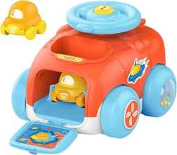 Anziehendes und interaktives Spielzeug für Kinder der Marke Woopie. Dieses Set enthält zwei kleinere Autos auf Rädern und eine Katapultschleuder für noch mehr Spielspaß.