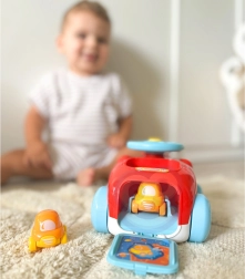 Mit Hilfe des Katapults können Kinder die Autos einfach und sicher aus dem größeren Auto schießen. Ein unterhaltsames Feature, das dem Spiel Dynamik verleiht.