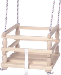 Diese Holzschaukel ist speziell für die kleinsten Kinder konzipiert, die bereits selbstständig sitzen können. Dank der robusten Konstruktion und der Sicherheitsbarriere bietet sie ein sicheres und komfortables Schaukeln. Die Schaukel kann sowohl innen als auch außen verwendet werden.
