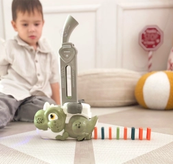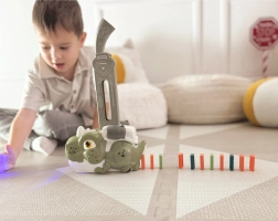 Entdecken Sie ein clever gestaltetes Kinderspielzeug, das klassisches Domino in actionreichen Spielspaß verwandelt. Die orangefarbene Dinosaurier-Lokomotive von WOOPIE stellt die Steine automatisch in Reihe, während blinkende Lichter und lustige Geräusche für Tempo und Atmosphäre sorgen. Ideal für Kinder ab 3 Jahren.