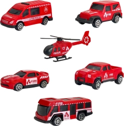 - Transporter, 4 Feuerwehrautos, Hubschrauber, Warnschilder