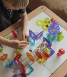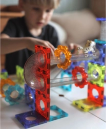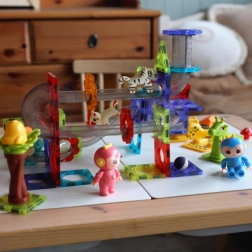 Die magnetischen Komponenten ermöglichen eine einfache und stabile Verbindung der einzelnen Elemente, was den Kindern abwechslungsreiche Bauerlebnisse bietet.