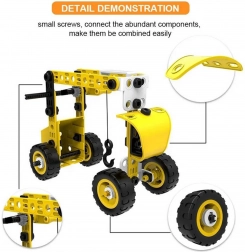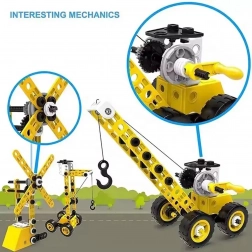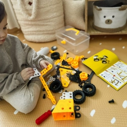 Das Bausatz-Fahrzeugset der Marke Woopie erlaubt es Kindern, 8 verschiedene Modelle wie einen Kran, ein Windrad und einen Lastwagen zu erstellen. Dieses kreative Spielzeug fördert die feine Motorik, das logische Denken und das räumliche Vorstellungsvermögen.