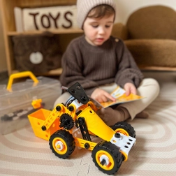 Entdecken Sie die Welt des konstruktiven Spielens mit dem Set Woopie Bau-Fahrzeuge. Dieses Set enthält 100 Teile, die es Kindern ermöglichen, bis zu 8 verschiedene Modelle von Maschinen und Fahrzeugen zu bauen. Das vereinfachte Schraub- und Zerlegesystem erleichtert es Kindern, in die faszinierende Welt des Bauens einzutauchen und manuelle Fähigkeiten zu entwickeln.