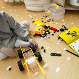 Der Bausatz hilft Kindern, die Grundlagen der Mechanik zu entdecken und Werkzeuge sicher zu verwenden.