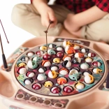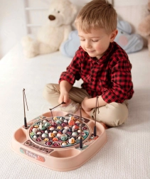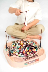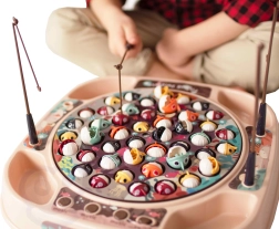 Das beliebte Geschicklichkeitsspiel Angeln in modernem Gewand. Nach dem Einschalten dreht sich die Platte mit den Fischen langsam im Takt der Musik und einige Fische öffnen sich – in diesem Moment ist der richtige Zeitpunkt, sie mit der Angelrute zu fangen. Kräftige Farben und das dynamische Spiel fesseln sofort die Aufmerksamkeit der Kinder und fördern ihren gesunden Wettkampfgeist.
