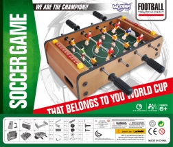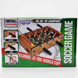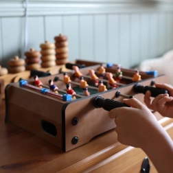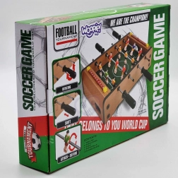 Genießen Sie spannende Mini-Matches mit dem kompakten WOOPIE Tischfußball. Eine stabile Holzkonstruktion, Metallstangen und ergonomische Griffe sorgen für eine geschmeidige Figurenkontrolle und komfortables Spielen. Integrierte Torzählwerke auf beiden Seiten helfen, den Spielverlauf im Blick zu behalten.