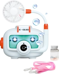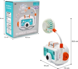 Die Maschine für bunte Seifenblasen in Form einer Kamera der Marke Woopie ist ein tolles Spielzeug für Kinder. Diese Kamera bietet nicht nur Seifenblasen, sondern auch Lichteffekte, die wie ein Blitz aussehen, einen Ventilator, der die Blasen weiter weg bläst, sowie eine angenehme Melodie für noch mehr Spaß. Kinder können Fotograf spielen und anschließend gemeinsam den Blasen nachjagen. Im Set enthalten sind außerdem ein Behälter für Seifenblasenflüssigkeit und eine Trageschlaufe, damit man die Kamera um den Hals tragen kann.