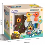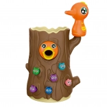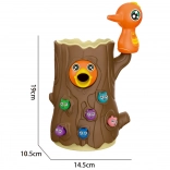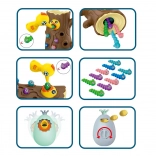 Das Spiel besteht darin, ein hungriges Küken mit Würmern zu füttern, die im Baumstamm versteckt sind. Das Kind benutzt die magnetischen Spechte-Schnäbel, um die Würmer zu „fangen“ und sie zum Küken zu bringen. Der Spaß erfordert Genauigkeit und Konzentration, sodass Kinder ihre manuelle Geschicklichkeit üben und dabei viel Freude haben. Nach Spielende können die Würmer aus dem Stamm ausgeschüttet und alles für die nächste Runde vorbereitet werden.