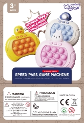 Pop It sieht aus wie ein Spielcontroller mit blauen und rosa Knöpfen und gibt lustige Geräusche von sich, um das Spiel zu stimulieren.