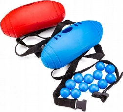 • Komplettset für zwei: rote und blaue Box mit Gurt + 24 Kunststoffbälle (12 rote, 12 blaue).