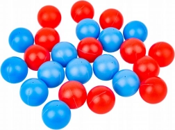 Das Set mit 24 Kunststoffbällen (12 roten und 12 blauen) ist leicht, widerstandsfähig und ideal für wiederholtes Spielen zu Hause oder auf Feiern.