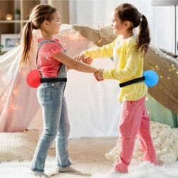 Das Set enthält Ausrüstung für 2 Spieler und ist geeignet für Kinder ab 3 Jahren. Dank des verstellbaren Gürtels und robuster Materialien ist das Spielen sicher und bequem. Das Spiel fördert Bewegung, Gleichgewicht und Koordination und sorgt für jede Menge Lachen und Wettkampfstimmung.