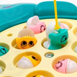 Setzt du auf Geschwindigkeit, Reaktion und Präzision? Der grüne Dinosaurier verbirgt einen rotierenden Teich voller bunter Fischchen, die sich öffnen und schließen. Deine Aufgabe: Mit der Angel so viele Fischchen wie möglich fangen, bevor die Runde endet – eine spaßige Herausforderung für kleine und große Angler.