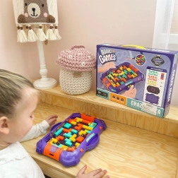 Entdecke ein fesselndes Geschicklichkeitsspiel, das Labyrinth, Tetris-Elemente und Flipper in einem kompakten Set vereint. Kinder trainieren Koordination, räumliches Denken und strategische Entscheidungen, während sie die Kugeln vom Start bis zum Sieg führen.