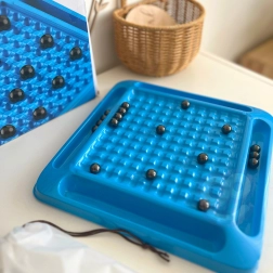 Das Platzieren der Kugeln im Raster trainiert Präzision, Geduld und Hand-Auge-Koordination. Ideales Lernspiel für Kinder ab 9 Jahren und Erwachsene.
