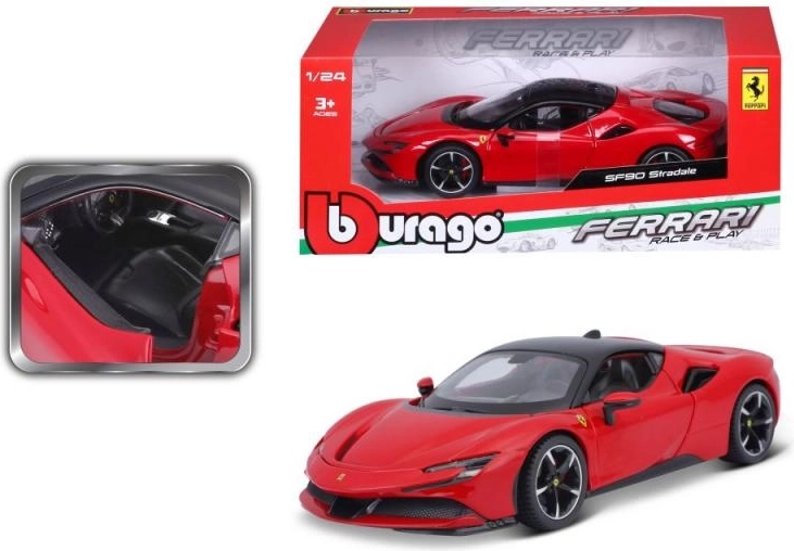 Das Modell zeichnet sich durch eine detailgetreue Ausführung aus, die jeden Sammler begeistert. Beobachten Sie die Schönheit des Ferrari SF90 Stradale im Maßstab 1:24.