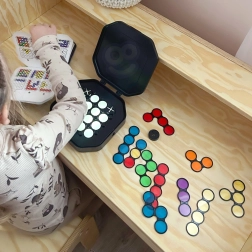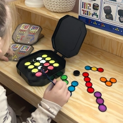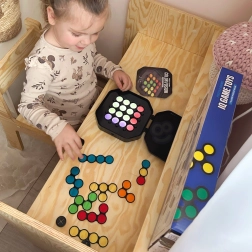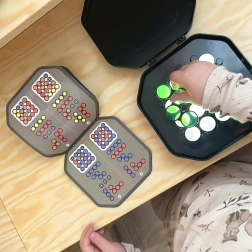 Entdecken Sie ein smart entwickeltes Spiel, das logische Herausforderungen mit farbiger Kreativität verbindet. Kinder legen transparente Scheiben nach Vorlagekarten und beobachten dank der beleuchteten Platte, wie sich Farben schichten und mischen. Das Spiel fördert auf natürliche Weise räumliches Vorstellungsvermögen, Hand-Auge-Koordination und lehrt, Schritte im Voraus zu planen.