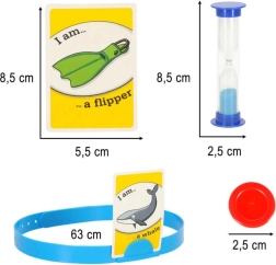 2 Stirnbänder, illustrierte Karten, Sanduhr, Spielsteine