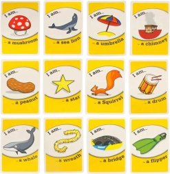 Karten mit einfachen englischen Beschriftungen fördern den Wortschatzaufbau und das Verständnis. Beim Raten und dem Stellen der richtigen Fragen lernen Kinder ganz natürlich.