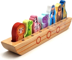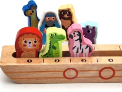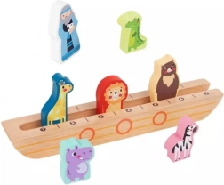 Das Spiel von Tooky Toy mit dem Thema Arche Noah ermöglicht es Kindern, Holzfiguren von Tieren anhand von Vorlagen aus dem beiliegenden Buch zu puzzeln. Jede Figur hat zwei Seiten, eine zeigt nach rechts und die andere nach links, was die Variabilität und Komplexität beim Lernen erhöht. Die Aufgabe des Spielers ist es, alle Figuren korrekt auf der Arche gemäß der gewählten Aufgabe zu platzieren und dabei logisches Denken einzusetzen, um die richtige Position und Richtung der einzelnen Tiere zu bestimmen.