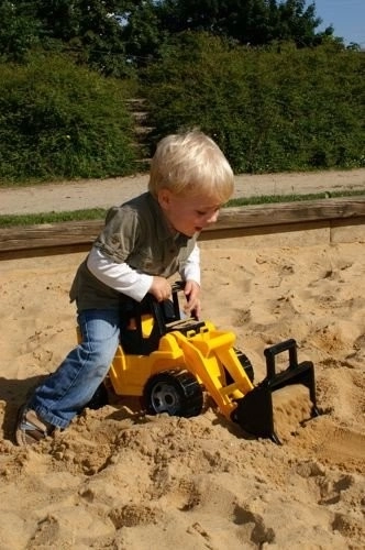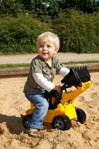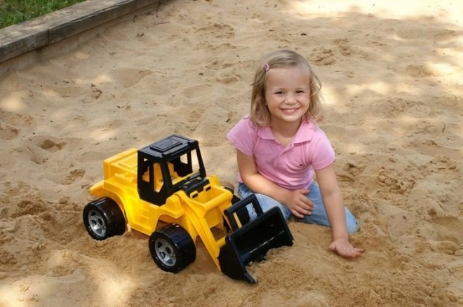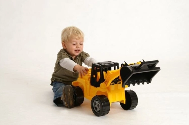 Kinderlader Lena in schwarz-gelber Ausführung aus hochwertigem Kunststoff, der den europäischen Normen entspricht. Ausgestattet mit einem beweglichen Arm mit Ladeschaufel, bietet es großartigen Spaß für Kinder.