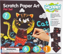 Das kreative Kratzbilder-Set WOOPIE ART&FUN bietet Kindern eine einfache und unterhaltsame Möglichkeit, eindrucksvolle farbige Illustrationen zu gestalten. Einfach den Holzstylus nehmen und mit sanftem Kratzen die Regenbogenfarben unter der schwarzen Schicht freilegen. Kinder erleben die Freude an den nach und nach sichtbar werdenden Farben und Motiven.