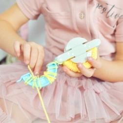 Das Set enthält ein Spezialwerkzeug zur Herstellung von Pompoms, das eine schnelle und einfache Anfertigung gewährleistet.