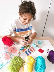 Das Set enthält 6 verschiedenfarbige Garne, mit denen Kinder bunte Monster gestalten können.