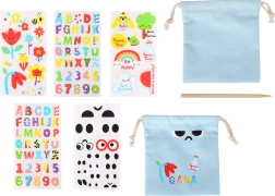 Kinder können mit bunten Aufklebern ihre eigene Tasche gestalten und ihre Kreativität entfalten.