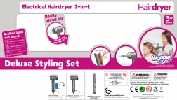 - - Das Komplettset enthält: Spielzeugföhn, Aufsätze, Bürste, Entwirrkamm usw.