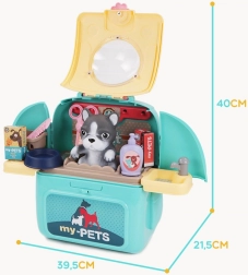 Wir präsentieren den tragbaren Schönheitssalon für Kinder von Woopie, der Ihrem Kind stundenlangen Spaß und Engagement mit seinem Haustier bietet. Kompaktes Design: Er ermöglicht einfaches Tragen überallhin, sei es auf den Spielplatz oder in den Kindergarten. Der Rucksack verfügt über einen praktischen Griff und einen speziellen Verschluss für maximale Sicherheit des Hundespiels.