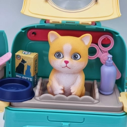 Kätzchenfigur, Näpfe, Schere, Kamm, „Shampoo“, Zubehörkörbchen, Futterdöschen und mehr. Alles hat seinen Platz – Aufräumen wird zum Kinderspiel.