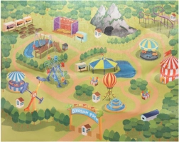 Inklusive Filzunterlage mit Dinosaurierpark-Motiv, die eine übersichtliche und thematische Umgebung für Geschichten schafft.