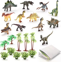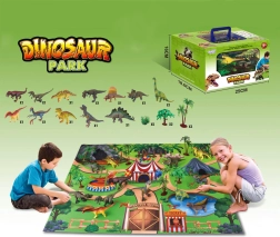 Lieferumfang: 12 Dinosaurierfiguren, 10 Baum-/Pflanzenfiguren, weiche Spielmatte, Tragkoffer.