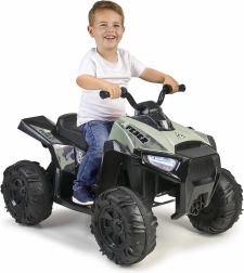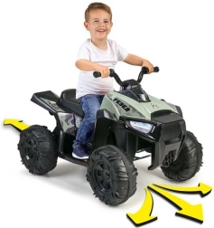 Wunderschönes elektrisches Kinderquad von der spanischen Marke Feber. Die Tarnfarbe verleiht ein Geländelook. Das Quad ist mit großen, widerstandsfähigen Rädern für besseren Grip ausgestattet und läuft leise, ohne die Böden zu beschädigen.