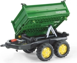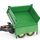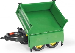 Der Rolly Toys Anhänger ist ein stabiler zweiachsiger Kippanhänger, der zu drei Seiten gekippt werden kann. Dieser grüne Anhänger ist mit robusten Rädern ausgestattet, die einen einfachen Transport der Ladung ermöglichen. Er ist mit allen Rolly Toys Fahrzeugen kompatibel, mit Ausnahme der Modelle rollyKids und RollyDumperKid.