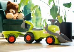 Der Anhänger kann leicht ab- und angehängt werden, was beim Spielen mehr Flexibilität ermöglicht. Kleine Traktorfahrer können verschiedene Gegenstände transportieren und so die Spielmöglichkeiten erweitern.
