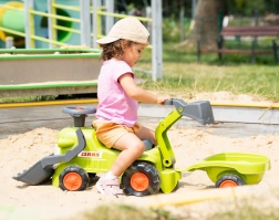 Der Traktor ist mit einer beweglichen Schaufel ausgestattet, die den Kindern beim Laden und Bewegen von Materialien Freude bereitet. So können sie die Rolle eines echten Baggers ausprobieren.