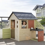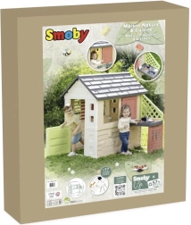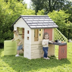 Smoby Nature ist ein stabiles und widerstandsfähiges Gartenhaus, das für den täglichen Einsatz im Freien konzipiert ist. Es umfasst einen Anbau mit Küche mit Grill und Spülbecken (Attrappe) sowie umfangreiches Zubehör, mit dem Kinder ihre Fantasie entfalten und Kochspiele nachahmen können. Die neutralen Farben fügen sich in jeden Außenbereich ein, und die ANTI‑UV-Oberfläche verhindert das Ausbleichen in der Sonne.