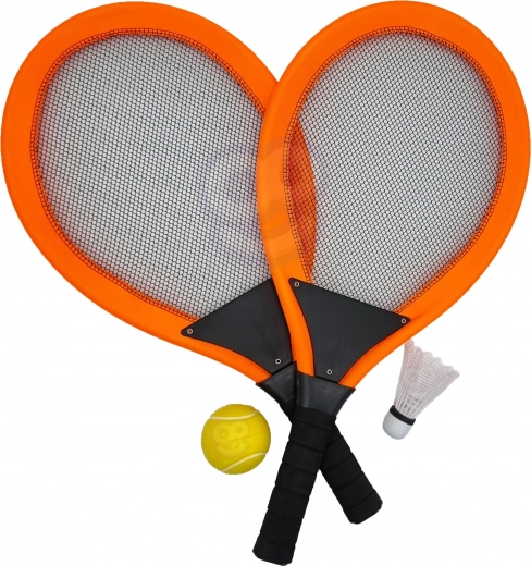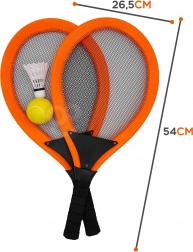 Das Set enthält: zwei Schläger, einen Ball und einen Federball. Die Marke Woopie bietet eine breite Palette von Spielzeug, einschließlich Karnevalskostüme, Hängeschaukeln und Schaumstoffspielzeug.