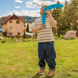 Die sichere Ausführung mit glatter Oberfläche und abgerundeten Kanten ist an kleine Kinderhände angepasst. Das Spielen mit dem Bumerang entwickelt Genauigkeit, Bewegungsplanung und die Auge-Hand-Koordination und unterstützt zugleich einen gesunden Lebensstil.