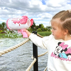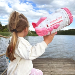 Dank des durchdachten Mechanismus verteilt die Pistole die Lösung gleichmäßig auf alle Düsen und sorgt für einen reichen Blaseneffekt. Die praktische Schale für die Lösung erleichtert das Eintauchen des Aufsatzes. Ebenfalls enthalten sind ein Akku mit USB-Ladung und 2 Füllungen, damit ihr gleich nach dem Auspacken starten könnt.