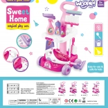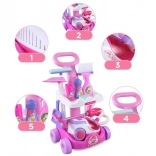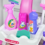 Das Set enthält alles, was für fantasievolles Spielen nötig ist: vom Wagen mit Griff und Halterungen bis zu Handbesen, Mop, Kehrschaufeln und „Reinigungsmitteln“. Die sichere Ausführung und das geringe Gewicht sorgen für eine bequeme Nutzung auch für jüngere Kinder.