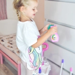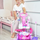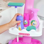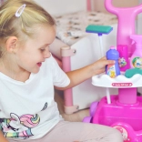 Der Kinder-Putzwagen Woopie in Rosa-Weiß bietet eine komplette Ausstattung für kleine Helfer im Haushalt. Dank des funktionsfähigen Staubsaugers mit elastischem Schlauch, Saugkraft und Leistungsanzeige genießen Kinder ein authentisches Spiel und lernen gleichzeitig, Ordnung zu halten.
