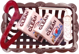Das Set enthält ein Bügelbrett, einen Wäschekorb, zwei Kleiderbügel und zwei Packungen Waschpulver für ein umfassendes Spielerlebnis.