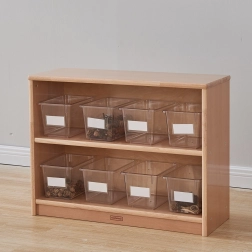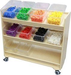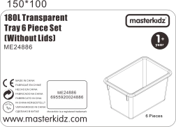 Die Boxen sind kompatibel mit dem speziellen MASTERKIDZ-Regal (ME13095), das bis zu 12 Behälter fasst und eine übersichtliche Aufbewahrung auf Regalböden oder den Transport des gesamten Sets auf einem Wagen ermöglicht. Die Ausführung ohne Deckel erleichtert Kindern die selbstständige Handhabung und beschleunigt sowohl das Aufräumen als auch die Vorbereitung auf die nächste Aktivität.