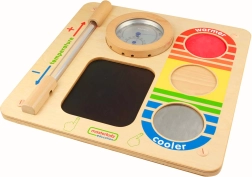 Die interaktive Holzwandtafel von MASTERKIDZ bringt Kindern auf sichere und spielerische Weise bei, warm, neutral und kalt zu unterscheiden. Dank der temperaturempfindlichen Fläche und eines farbigen Thermometers können Kinder anschaulich testen, was wärmer und was kühler ist, und besser verstehen, wann man etwas lieber nicht berühren sollte. Ideal für Zuhause, Kindergarten und Sonderpädagogik, kompatibel mit dem Masterkidz Flex-System.