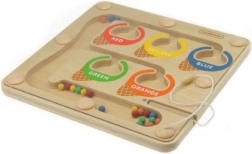 Die geschlossene Konstruktion mit transparenter Abdeckung ist sicher und robust, die Kugeln bleiben im Inneren und nichts geht verloren. Beim Bewegen der Kugeln entlang der Bahnen in den Farben Rot, Gelb, Blau, Grün und Orange trainieren Kinder Feinmotorik, Koordinationsfähigkeiten, Geduld und Konzentration.