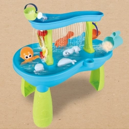 Der Wassertisch Oktopus von der Marke WOOPIE bietet ein einzigartiges Erlebnis mit Wasser und Sand für Kinder. Mit 18 Zubehörteilen wie 3 Förmchen, Oktopus, Gießkanne, Körbchen, Sandaufheber und 2 Schaufeln genießen Kinder endlose Spielmöglichkeiten. Das in die obere Tischhälfte gegossene Wasser kann durch die Löcher im Boden fließen oder die Wassermühlen drehen. Ideal zum Spielen zu Hause und im Freien!